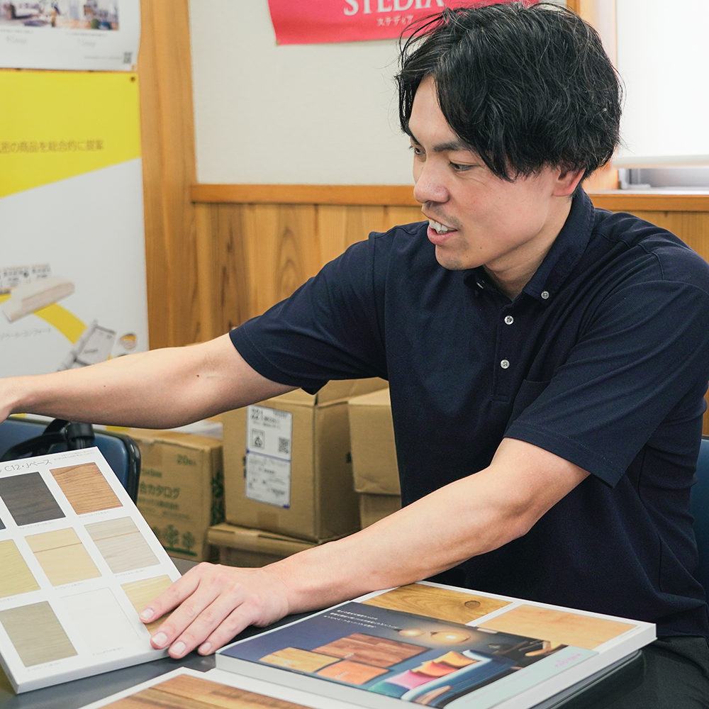 建材の提案や販売業務を担当している持田さん。
